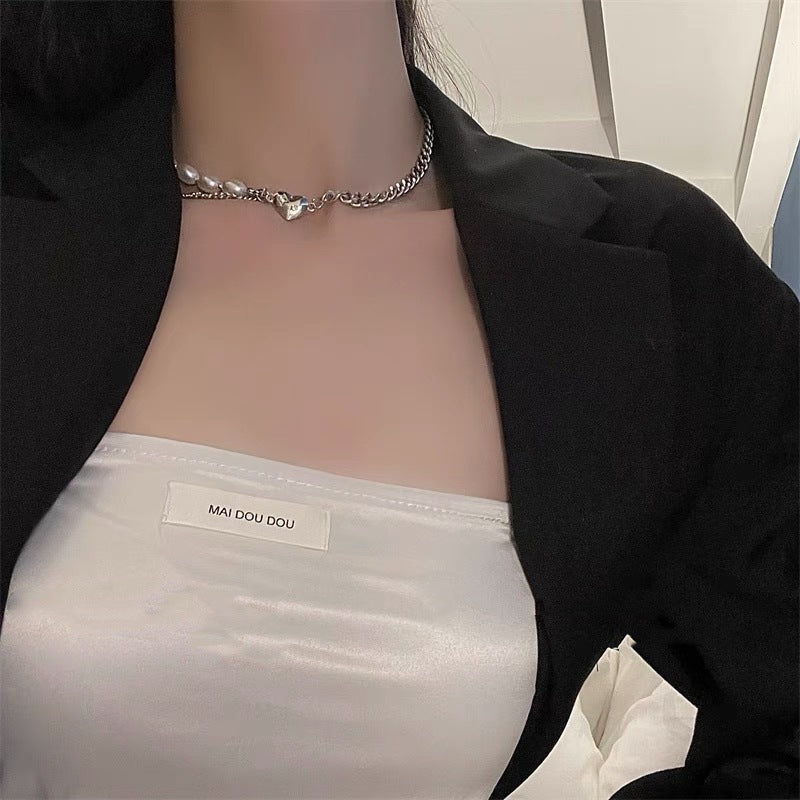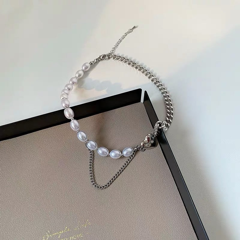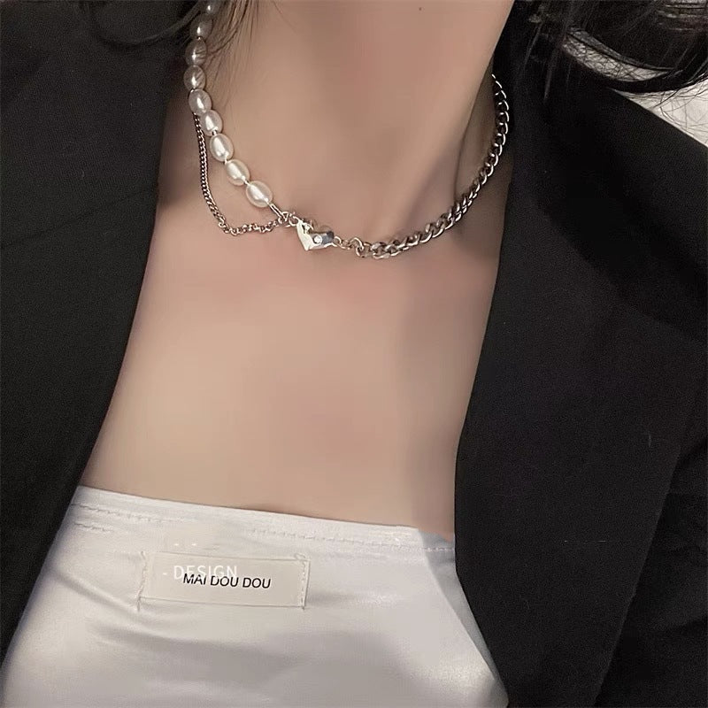 Beautiful Heart Pearl Love Necklace Metal Chain