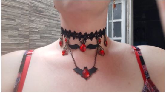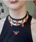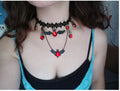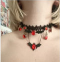 Black Elegant Red Bat Halloween Lace Choker Necklace KT021