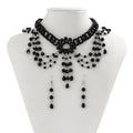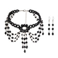 Black Silver Elegant Beaded Choker Necklace + Earrings Set 4733