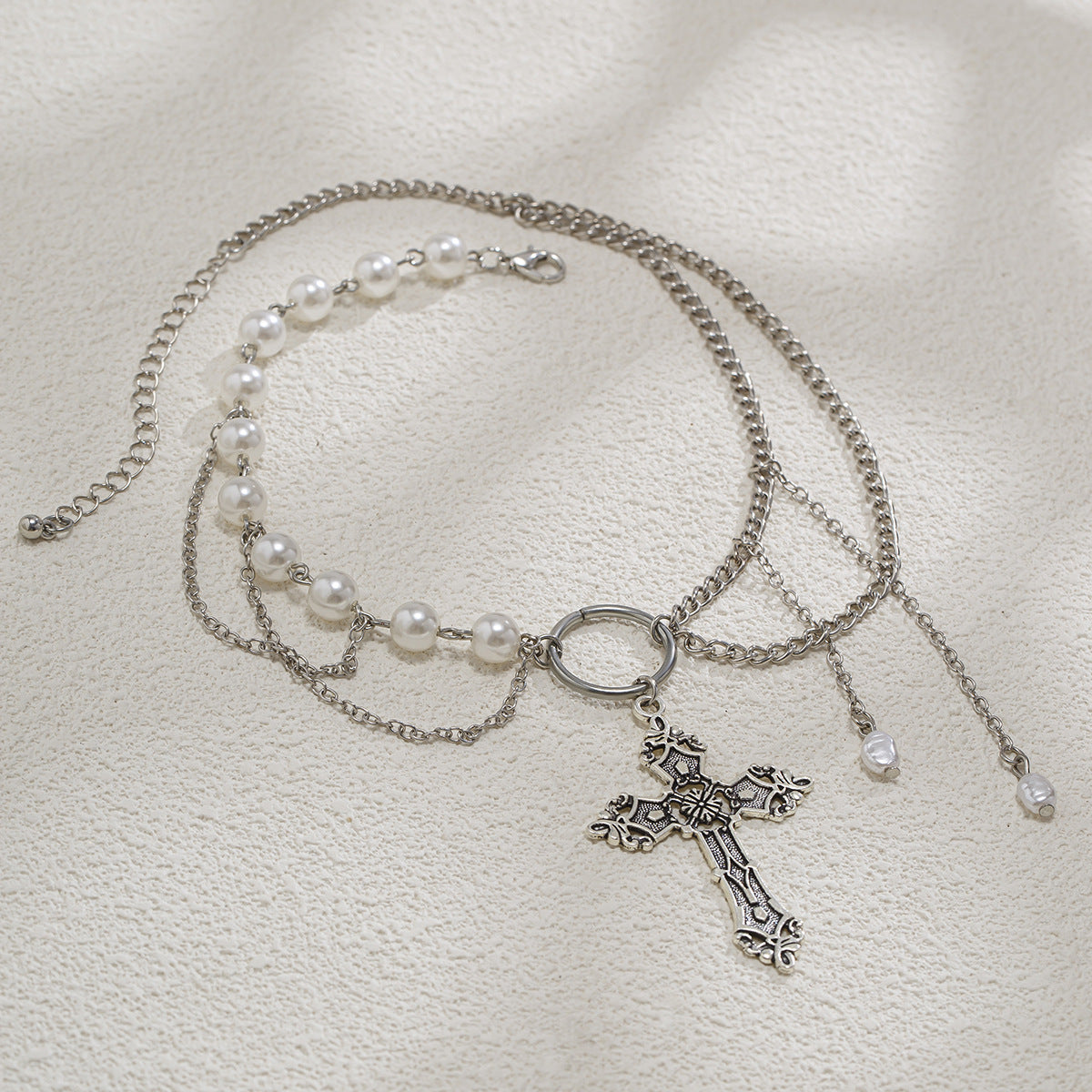 Cross Star Beaded Multi-Layer Necklace Gothic Style Chain