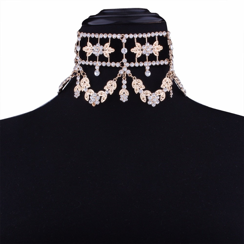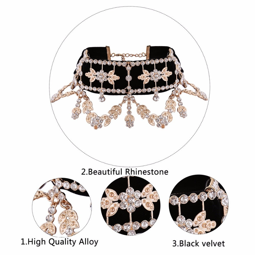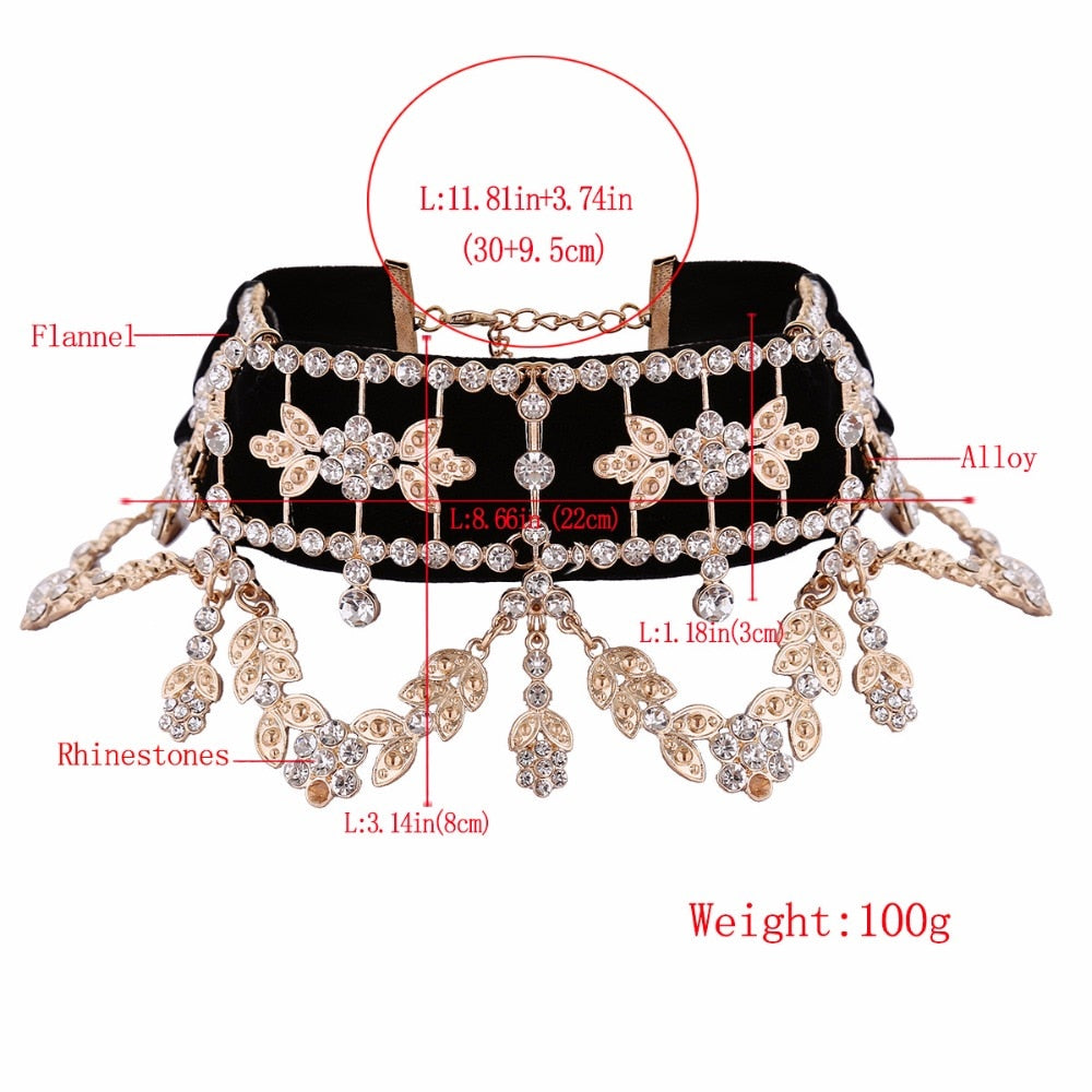 Crystal Rhinestone Choker Necklace Designer Elegant Velvet Statement Necklace