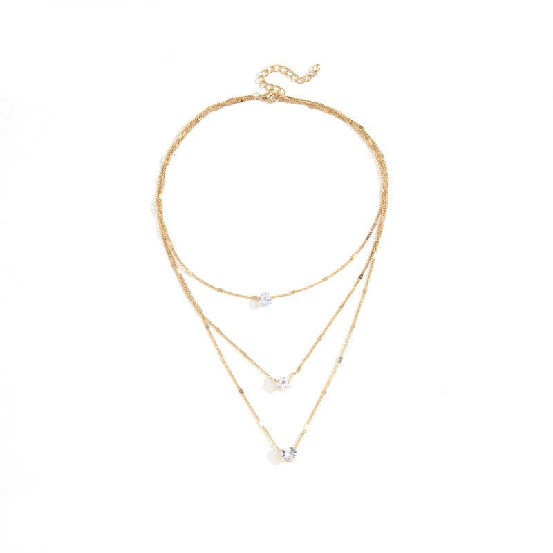 Crystal Zircon Heart Star Drop Charm Layered Pendant Necklace Set HSC0001