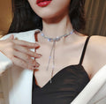 Designer Elegant Bow Diamond Tassel Necklace Personality Necklace Cool Style Accessories