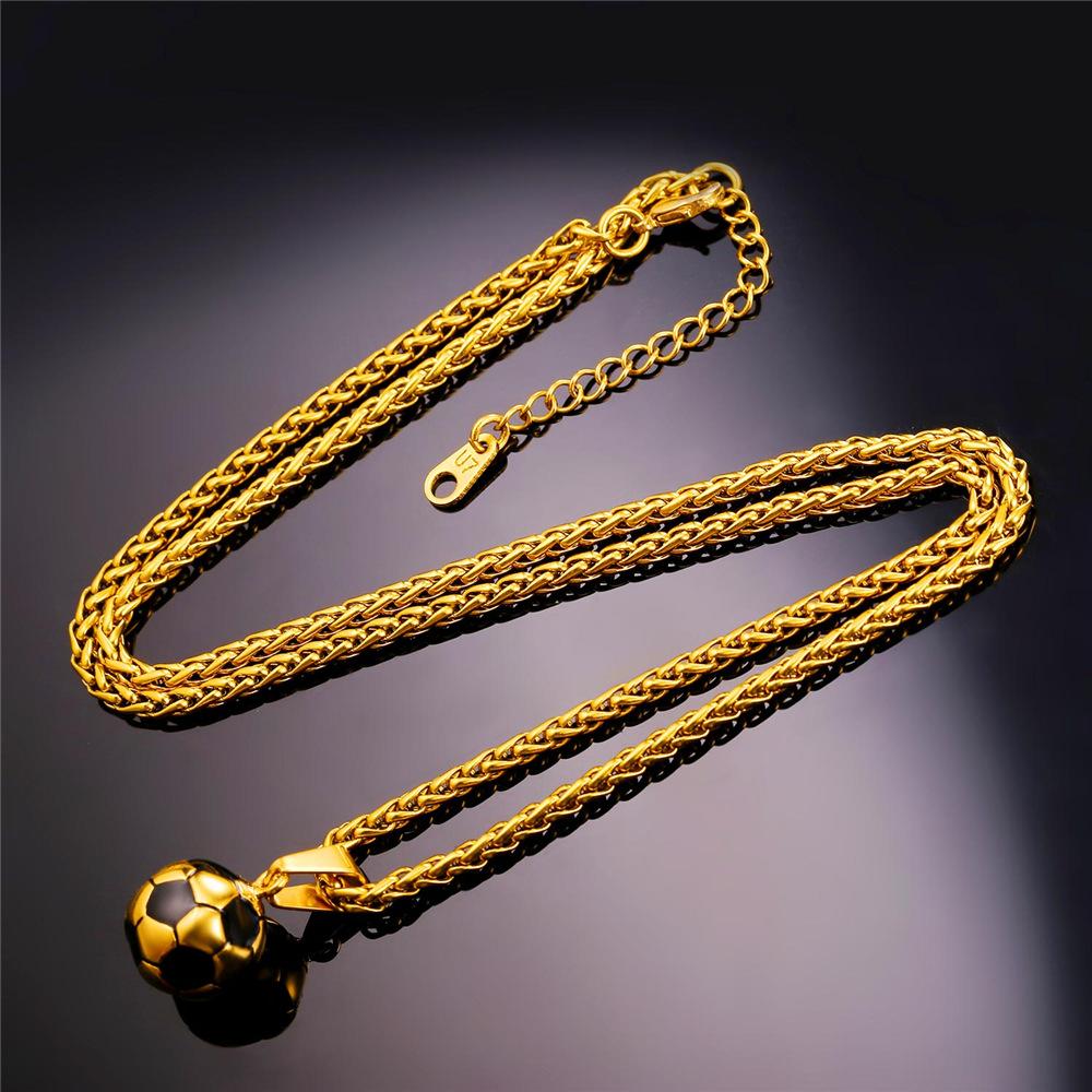 Football Pendant with Chain Gold Silver Stainless Steel Soccer Necklace