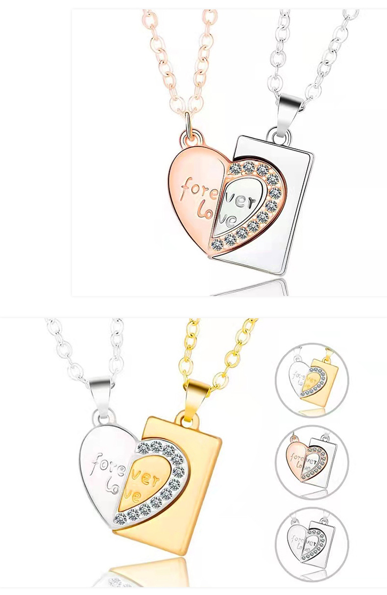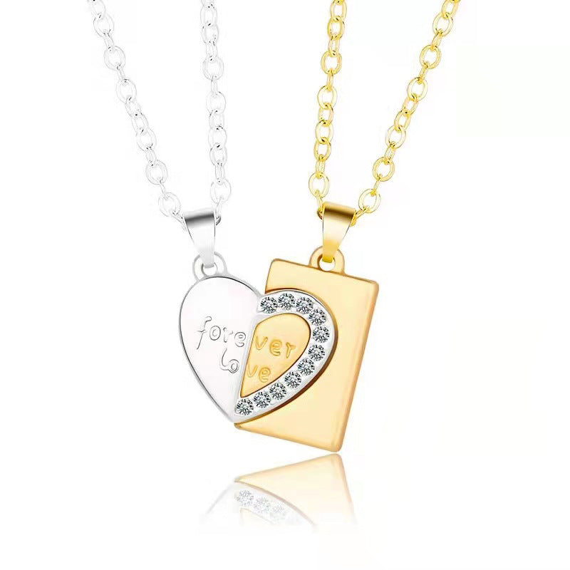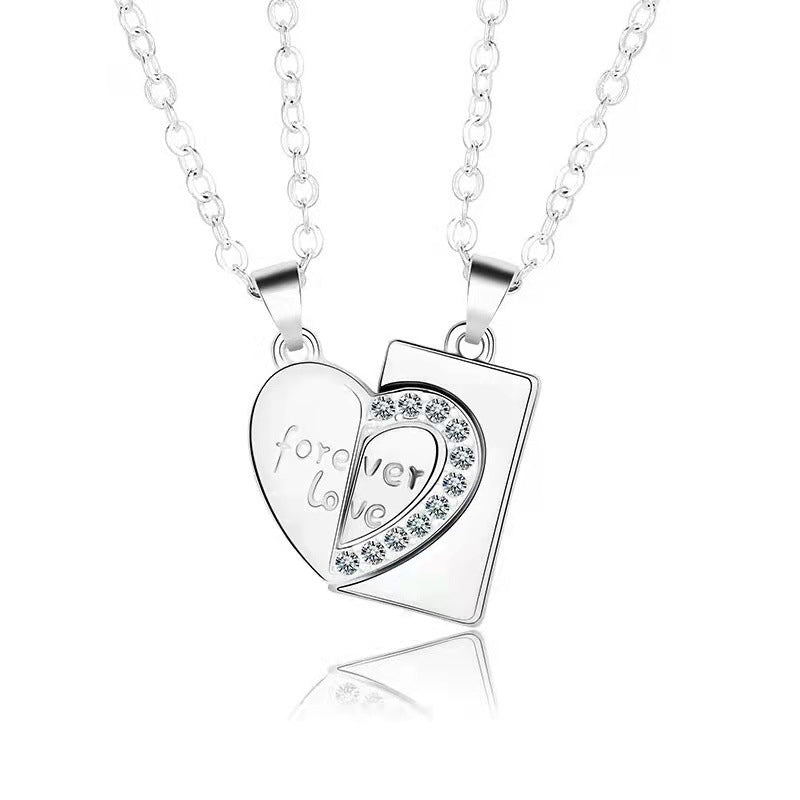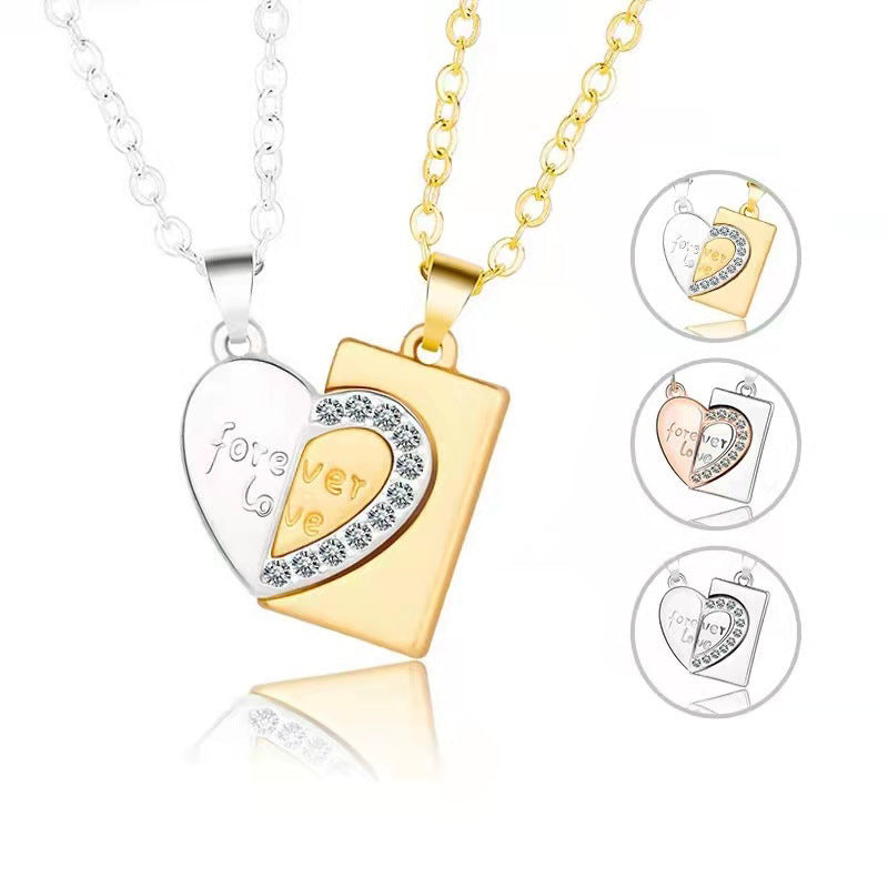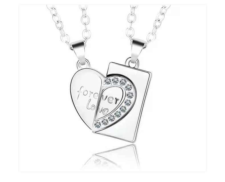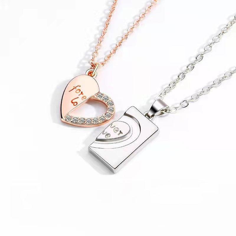 Forever Love Imprint Heart-Shaped Couple Pendant Necklace Women's Collarbone Chain Necklace Set