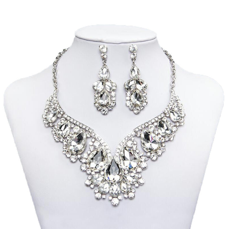Full Diamond Designer Necklace Earring Set Exquisite Zircon Bride Wedding Dress Accessories