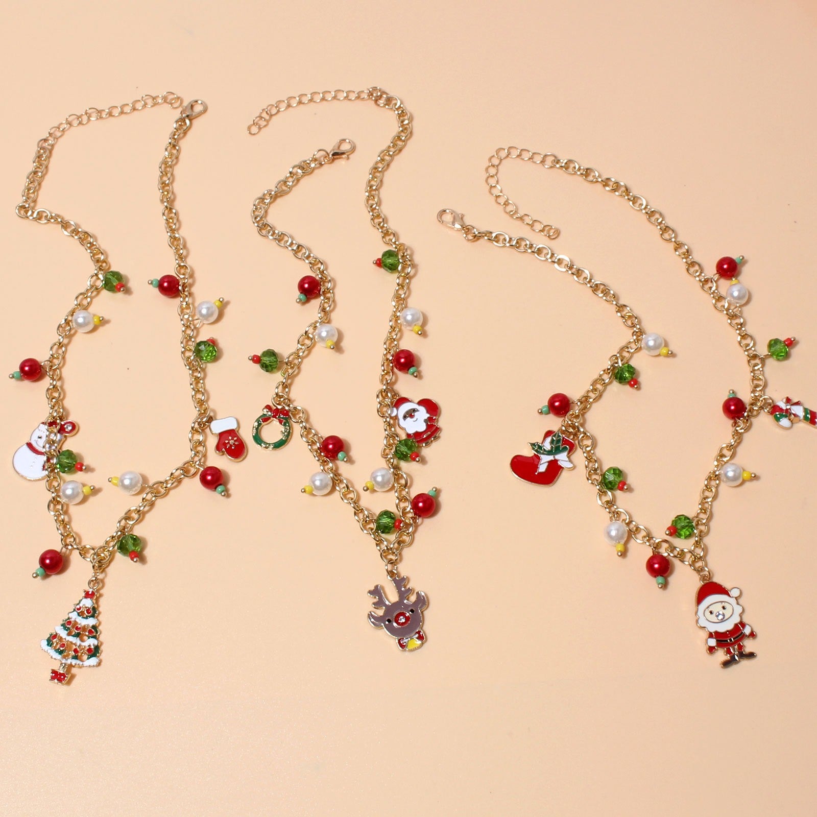 Holiday Cheer Necklace Colorful Pearl Santa Claus, Elk & Christmas Tree Necklace Ornaments