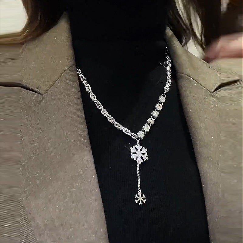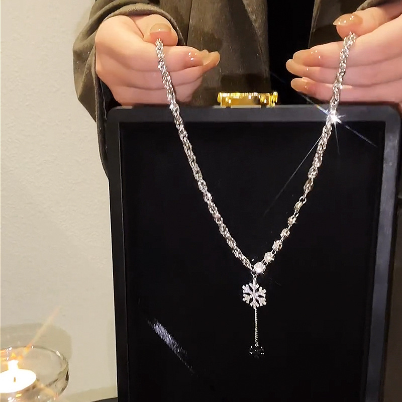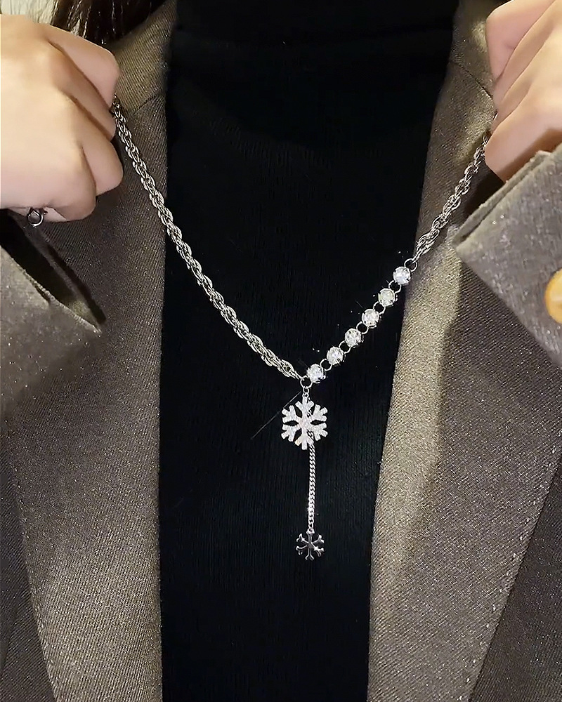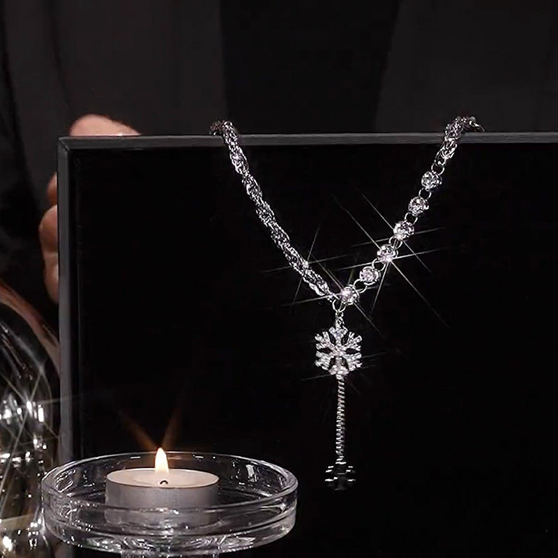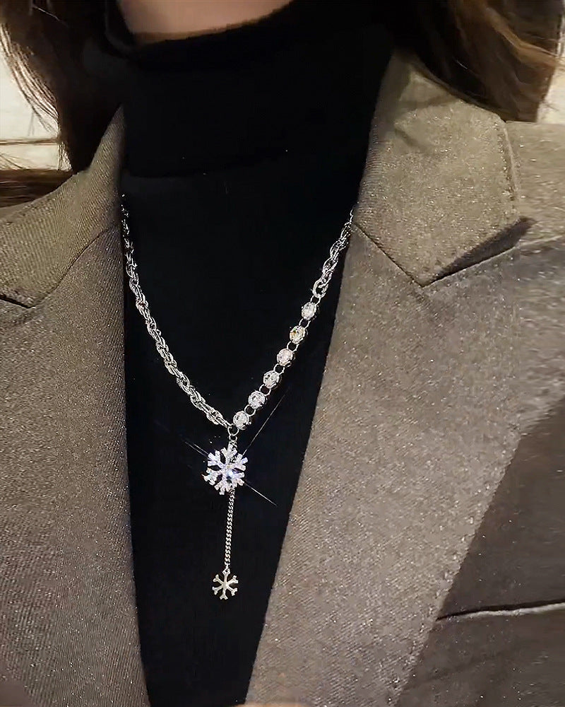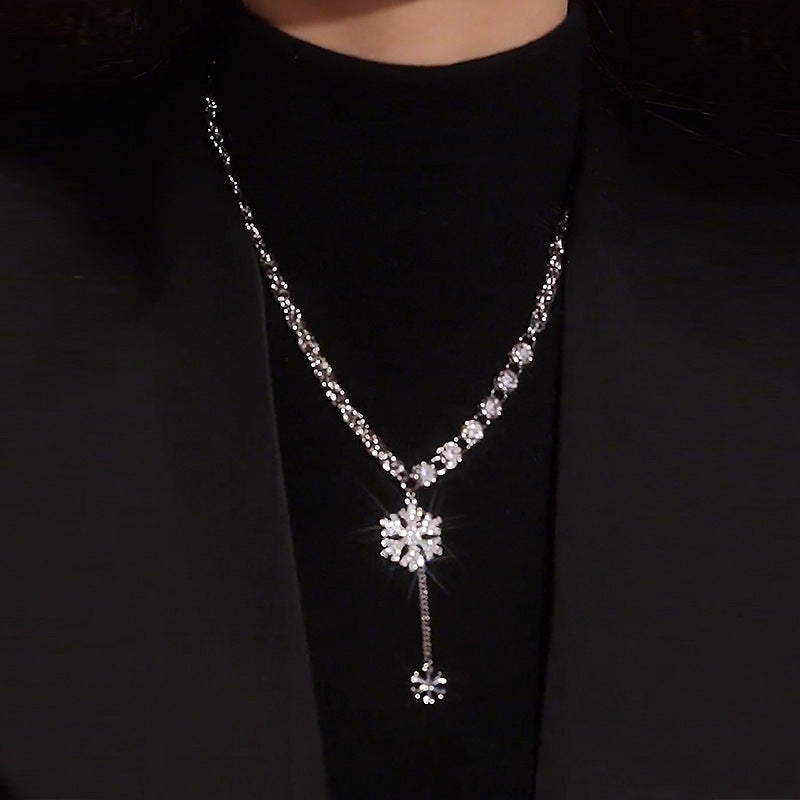 Snowflake Designer Elegant Pendant Necklace Cubic Zircon Simple Personality Temperament Fashion Sweater Chain Necklace